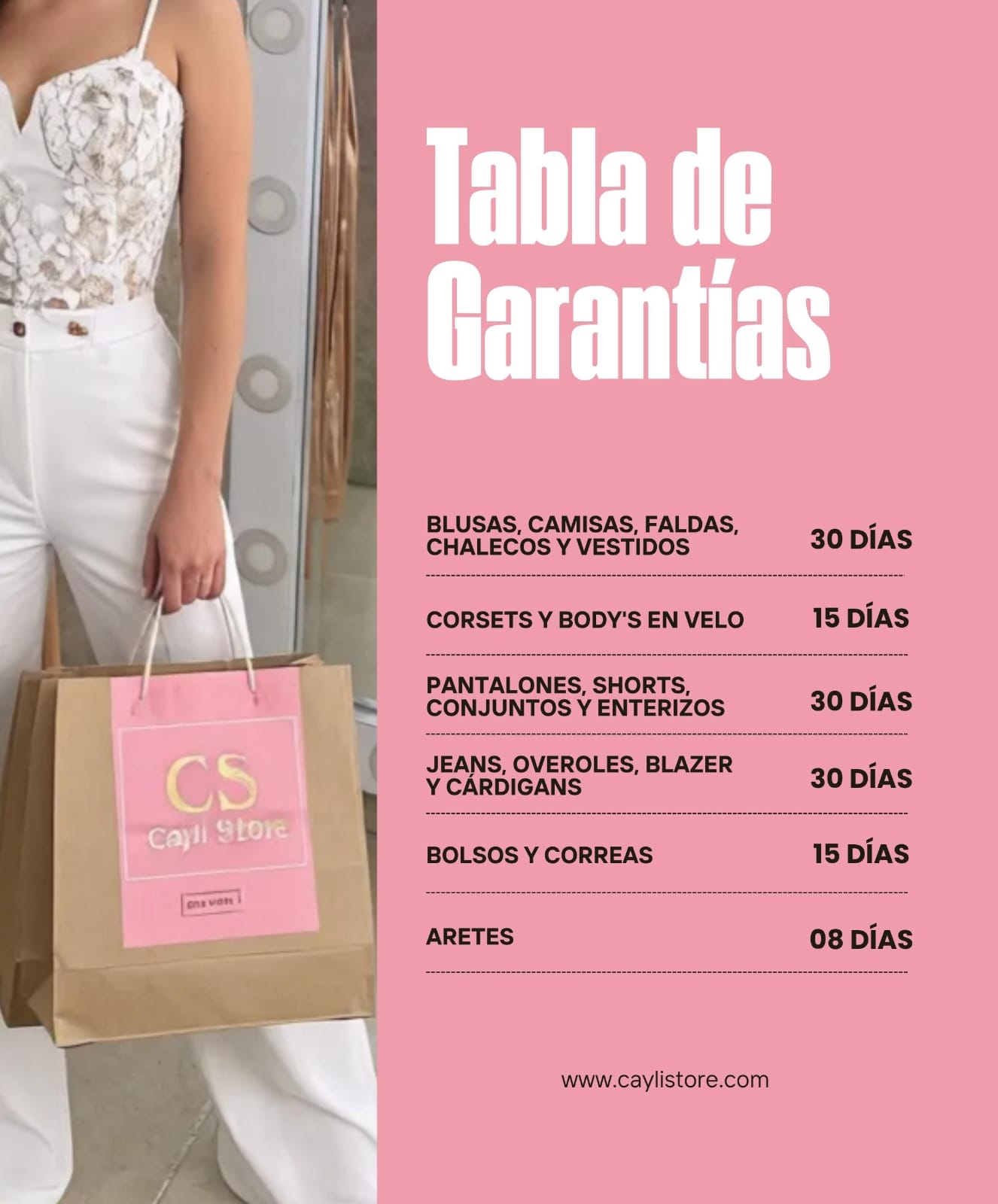 En Cayli Store trabajamos con responsabilidad, respeto y amor para ofrecerte prendas de excelente calidad y un servicio confiable.